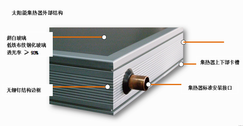 采用藍(lán)鈦吸熱材料,是集熱效率較高的太陽(yáng)能吸熱涂層,全銅導(dǎo)熱管,導(dǎo)熱快,使用壽命長(zhǎng)