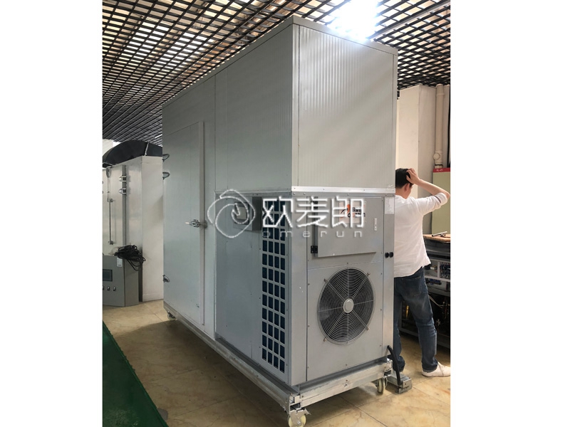 本設(shè)備為整體式結(jié)構(gòu),內(nèi)置循環(huán)風(fēng)機,主機需放在烘房內(nèi),避免了熱量的損失,同時也省去了連接銅管,抽真空,布置線路的繁瑣的工序,安裝非常快捷,