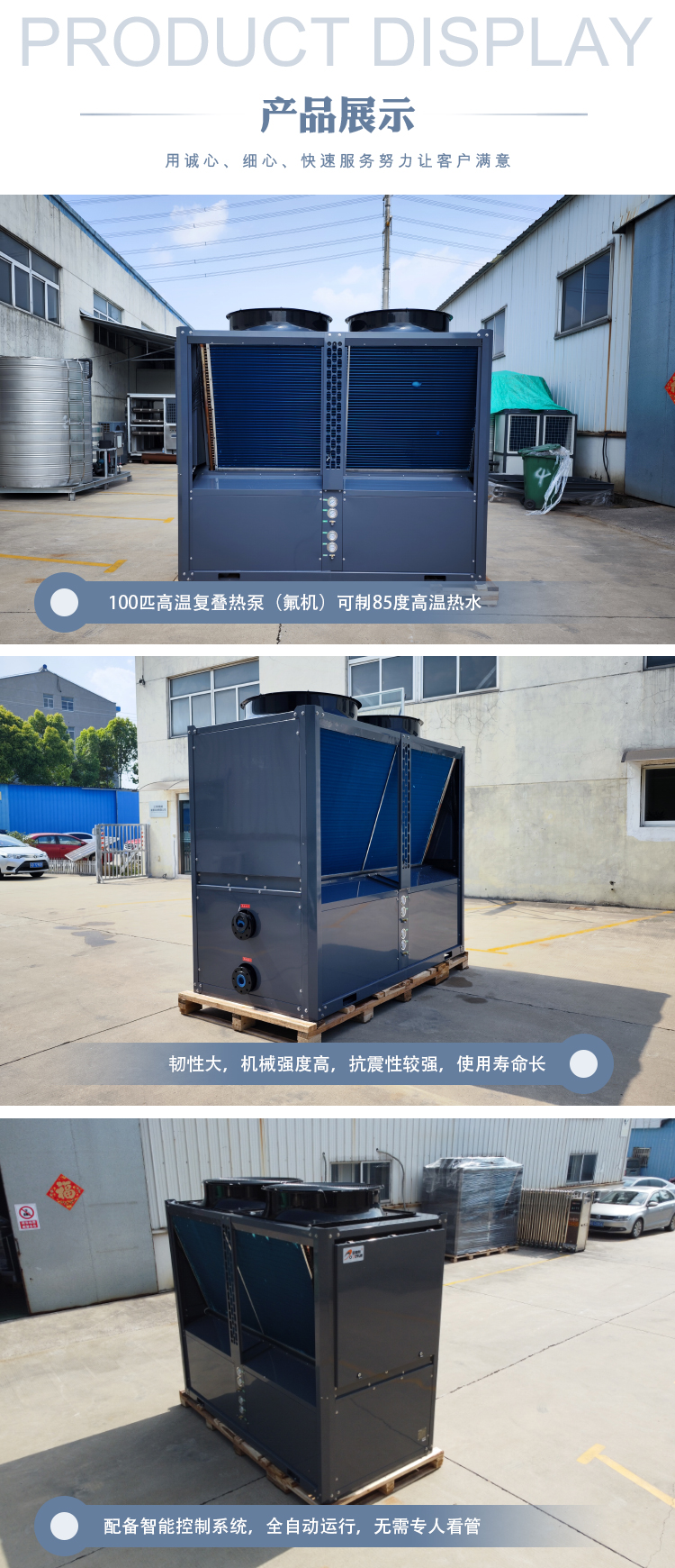 簡介:100匹高溫復疊熱泵,可制85℃高溫熱水,可用于電鍍廠、印染廠、化工、醫(yī)藥、金屬前處理、屠宰場等企業(yè)高溫用水需求!