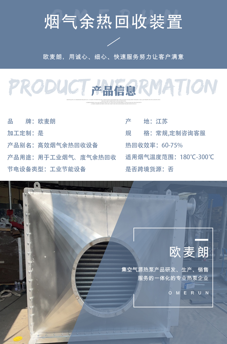 簡介:鍋爐煙氣余熱回收,用于煙氣、廢氣余熱回收制取熱水!