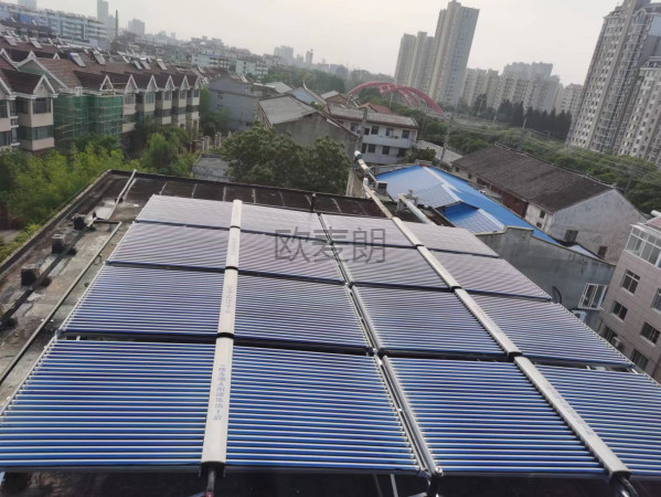 項目配置:8組太陽能集熱器+兩臺空氣能熱泵熱水器