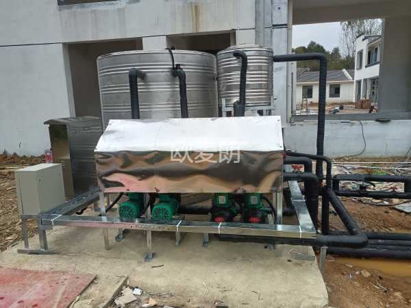 項目配置:20塊平板太陽能+3噸水箱+兩臺歐麥朗空氣能熱泵