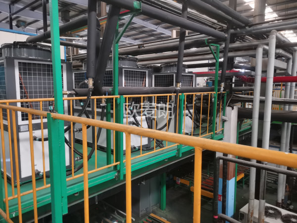 系統配置:兩條生產線改造,每條生產線配置5臺歐麥朗制熱冷回收熱泵機組