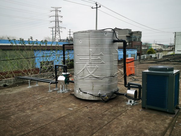 項目配置:一臺歐麥朗空氣能熱泵熱水機組+一個圓形保溫水箱