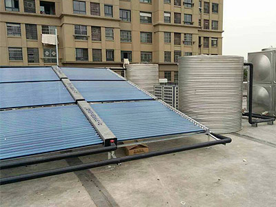 該熱水系統一般適用于熱水量較大的場合,需要提供太陽能和水箱安裝的場地和面積。相比,空氣能熱水器的占地面積就相對較少且不受安裝場地限制,系統采用自動控制管理,自動補水、恒溫,方便操作。
