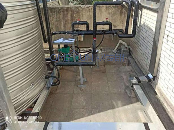 設(shè)備配置:5噸的水箱+10組50管集熱器+電加熱輔助熱源