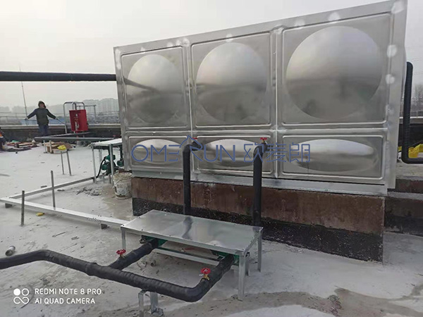 設備配置:配備一個3*3*1.5M的方形水箱+16組太陽能集熱器+150KW低碳冷凝模塊爐。
