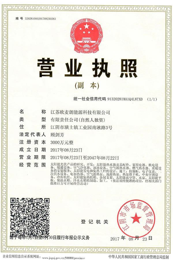 • 歐麥朗能源營業執照