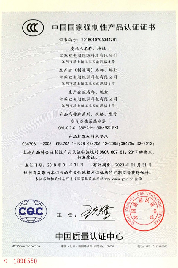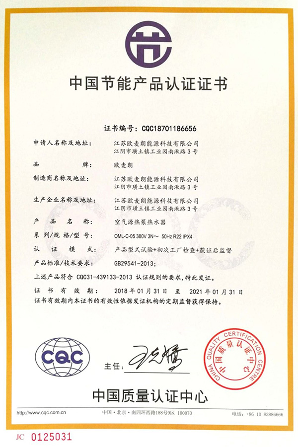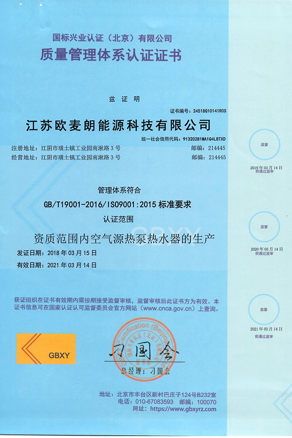 歐麥朗能源科技資質證書