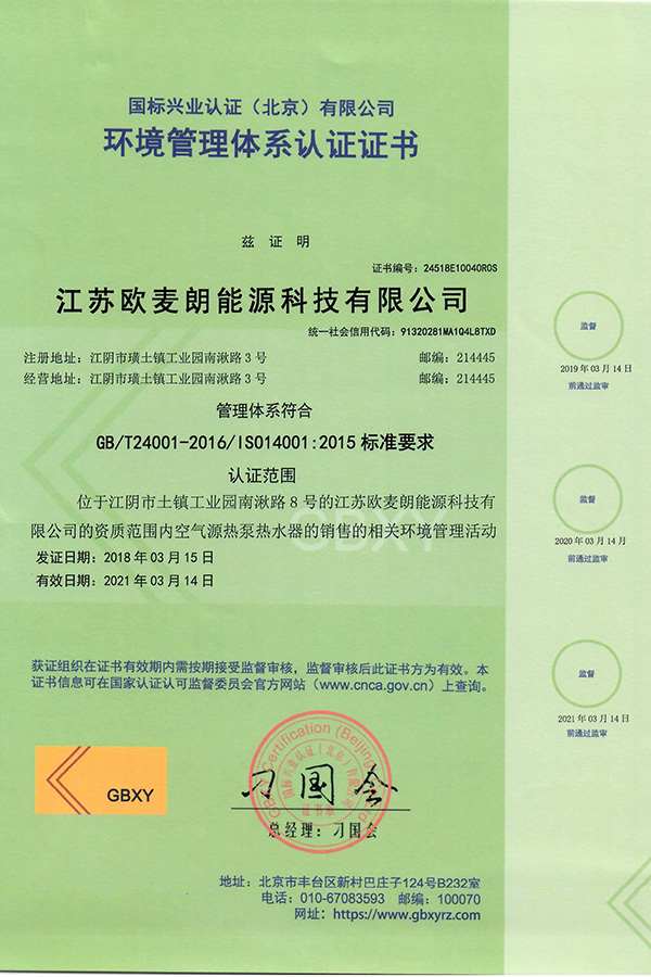 • ISO14001:2015體系認證證書