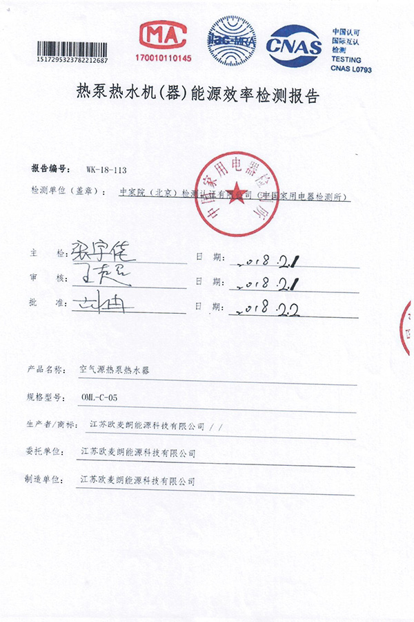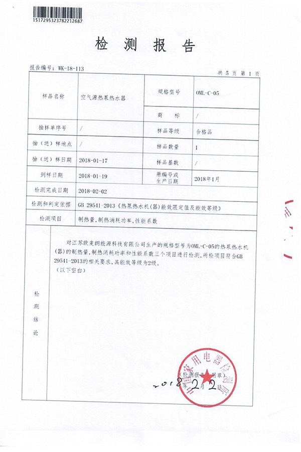 空氣源能效檢測報告