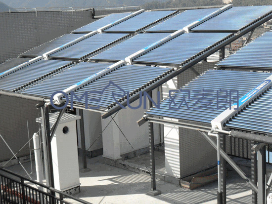 為處理多層建筑或集體宿舍等因樓板總面積比較有限和熱水計量檢定難題,歐麥朗提出一種新式太陽能熱水系統(tǒng)—分散-集中型太陽能熱水系統(tǒng)。說白了分散-集中型太陽能熱水系統(tǒng),即分散集熱、集中化儲熱、集中化輔熱、集中供熱的太陽能熱水系統(tǒng)。太陽能熱水工程分散設(shè)計方案、集中化應用,每一個地區(qū)的太陽能集熱器總面積較小,在工程建筑中安裝的部位較多,較為靈便,而集中化供電方法既節(jié)約管路又便捷計量檢定。