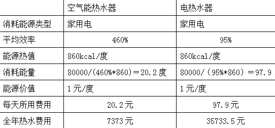 以上對比明顯看出空氣能熱水器的性,效率高,1度電能產生4.6KW的熱量,大大節省了后期營業中的運行費用;