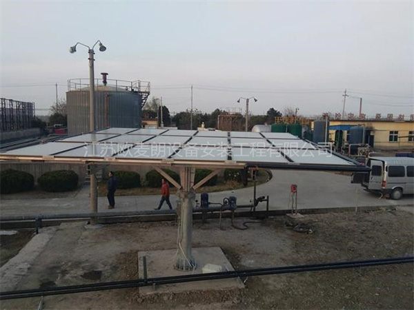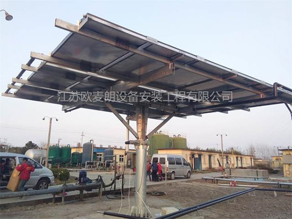 江蘇泰州姜堰油田廠,需要給油溫進行預熱,采用平板太陽能預熱方式。考慮到充分利用免費的太陽能光照,此系統采用太陽能跟蹤器,根據太陽光照的變化自動調整太陽能板,達到能源化的超大運用。