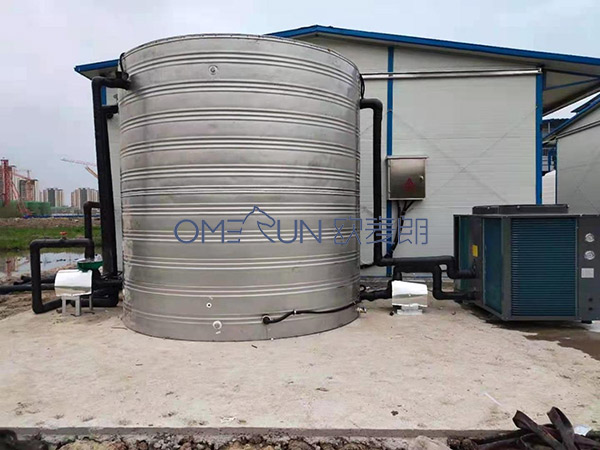 10p商用空氣能熱泵熱水機(jī)組+10噸保溫水箱,滿足工地300人使用