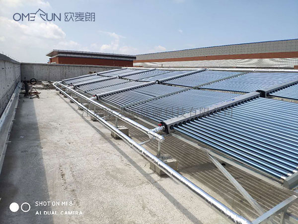 1、晴好的天氣情況下,企業可以用太陽能來吸熱來供高溫熱水,太陽能的水溫一般情況下可以達50-80℃左右(根據季節和太陽能配置以及使用的情況來定),當太陽能供熱達不到企業溫度的要求時,可以啟動空氣源熱泵輔助加熱制取熱水,空氣源熱泵通過吸收空氣中大量的低位熱能,經過壓縮機的壓縮變為高位熱能,傳遞給水箱中,把水加熱起來儲存備用。