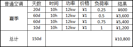 普通空調(diào)系統(tǒng)夏季制冷時,機組總功率為12KW。 (機組功率根據(jù)負(fù)荷及機組能效比確定)