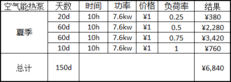 降溫除濕熱回收空氣源熱泵系統(tǒng)夏季制冷時,機組及水泵的總功率為7.6KW (機組功率根據(jù)負(fù)荷及機組能效比確定)