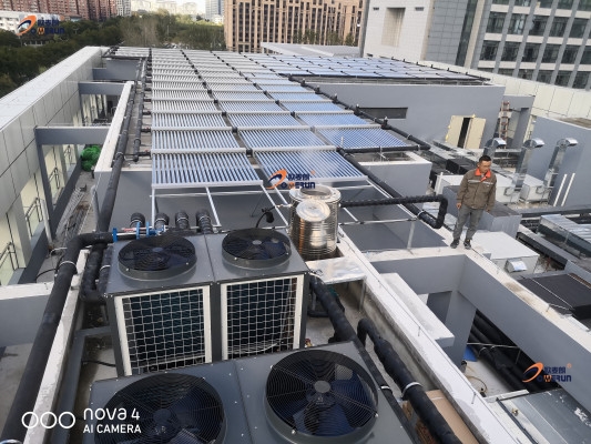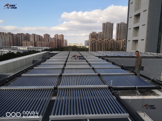 項目配置:100組太陽能集熱器+3臺空氣能熱泵熱水機組