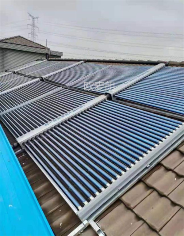 該公司有一棟宿舍樓,要滿足五十個員工洗澡熱水。以前裝了8臺30管太陽能單機,已經裝了十五年,管路已經老化、凍壞。客戶反映以前的太陽能單機冬天不好用,容易凍壞,了解到歐麥朗公司是一家專門從事太陽能、空氣能熱水的企業,并咨詢了工程用太陽能熱水系統。通過溝通后決定采用φ58x1800X50管的工程模塊,具有自動定時定溫上水、定時輔助加熱、管道防凍循環功能,節能又環保。
