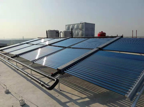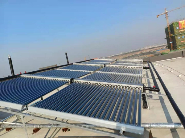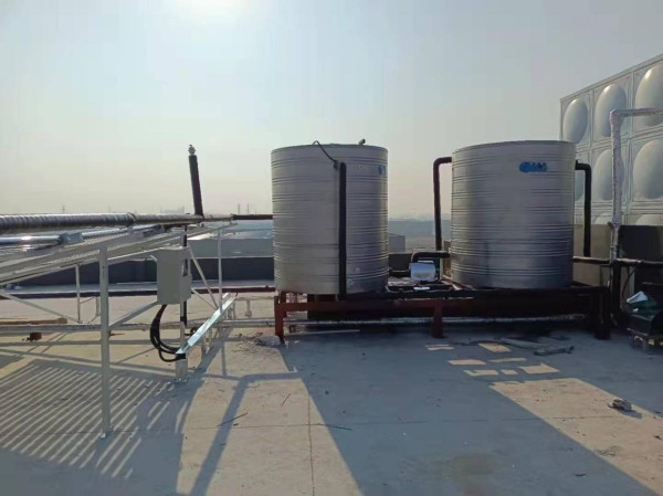 針對(duì)新廠房辦公樓30人加上食堂熱水需求,歐麥朗公司建議配置3噸熱水,6組太陽能集熱器+空氣能雙水箱控制,晴好天氣時(shí)充分利用太陽能加熱,避免了陰雨天輔助能源啟動(dòng)加熱過多的冷水,以最大化節(jié)省能源。目前熱水已安裝調(diào)試完畢,通過驗(yàn)收。