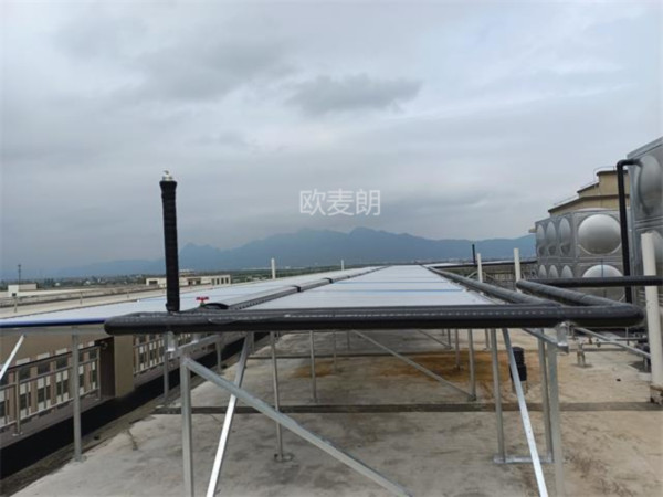 此次江蘇歐麥朗為丁裕兩創園員工宿舍樓設計的是60組太陽能集熱器+5臺空氣能熱泵機組,可實現800-1000人生活用水需求,遠程監控,智能控制,為園區員工帶來了舒適的熱水。