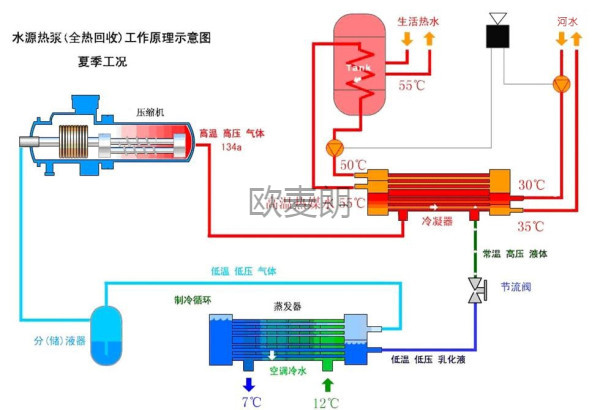 制熱冷回收熱泵熱水機組工作原理