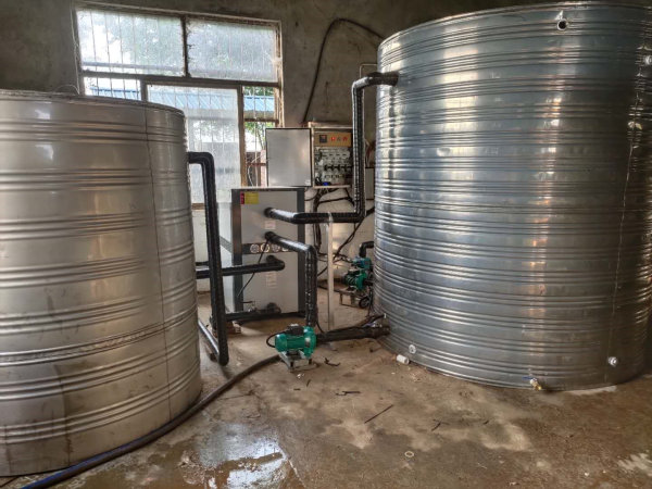 以位于安徽宿州某屠宰廠為例,該屠宰場每日需要消耗8噸80℃的熱水。經營者對電鍋爐、燃氣鍋爐、生物質鍋爐、空氣能熱泵、水源熱泵幾大能源的利弊進行了詳細的比較,終選用“空氣能熱泵+水源熱泵”結合的方案。