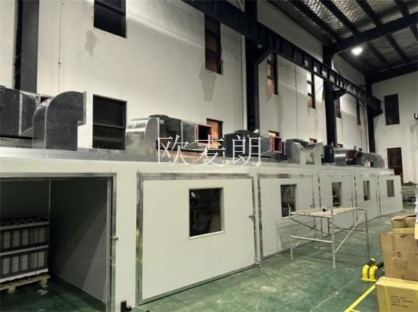針對電池老化的特點(diǎn),歐麥朗研發(fā)采用熱泵技術(shù)代替?zhèn)鹘y(tǒng)的電加裝置技術(shù)方案,系統(tǒng)由熱泵機(jī)組、盤架、拉門、循環(huán)風(fēng)機(jī)和風(fēng)道組成。通過循環(huán)風(fēng)機(jī)為老化房提供熱風(fēng),設(shè)備模擬出一種高溫、惡劣環(huán)境,通過該老化房對電子產(chǎn)品進(jìn)行測試,讓產(chǎn)品在此環(huán)境中接上模擬負(fù)載通電運(yùn)作,通過此測試可查出不良品或不良零件,使客戶迅速找出問題、解決問題的有效手段,充分提高客戶生產(chǎn)效率和產(chǎn)品品質(zhì)。