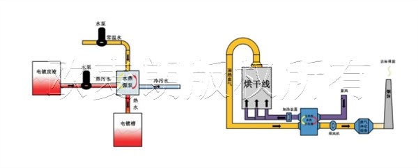 同時我們針對電鍍生產還配套有余熱回收方案,如電鍍液廢液熱量回收,電鍍烘干線烘干廢氣熱量回收。我們可以將廢液廢氣中的熱量提取出來重新用于生產需要。