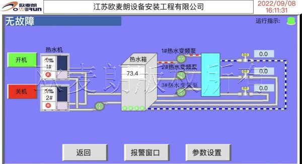 在歐麥朗空氣能熱泵高溫?zé)崴到y(tǒng)中,空氣能熱泵機(jī)組通過熱泵循環(huán),將自然界中的低溫?zé)崮芤詨嚎s和膨脹的方式轉(zhuǎn)化為高溫?zé)崮埽缓髮⒏邷責(zé)崮芡ㄟ^熱交換器傳遞到聚氨酯發(fā)泡生產(chǎn)過程中的熱水中。在這個過程中,空氣能熱泵機(jī)組的能源利用效率很高,并且能夠大大降低能源消耗和環(huán)境污染。
