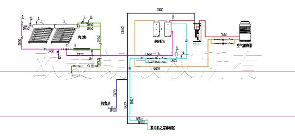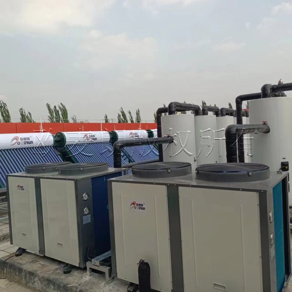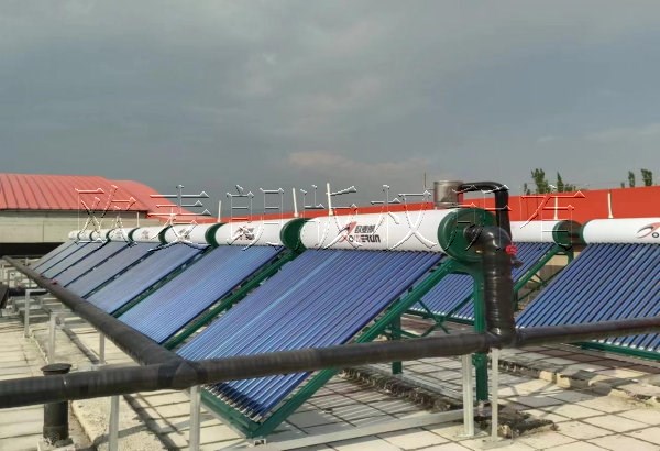 無動力太陽能熱水系統是一種高效太陽能熱水系統,集熱系統由開式儲熱水箱、閉式波紋管換熱器、真空管等組成,承壓式熱泵熱水系統由熱泵主機、電加熱水箱和多個儲熱水箱組成。