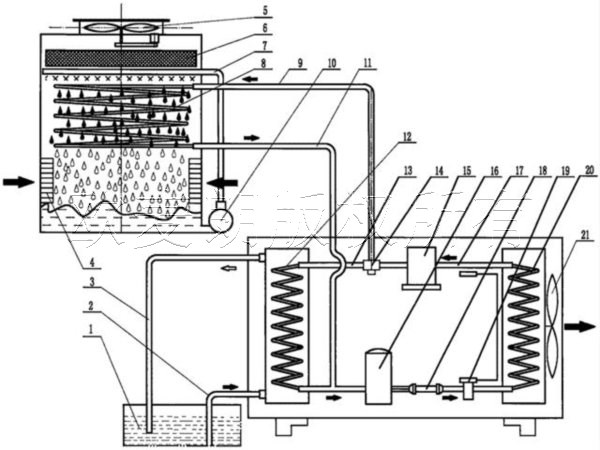 通常污水處理厭氧池需要升溫,而污水在處理結束后的水溫通常都在15度左右。如何有效的進行資源回收利用是節能的重要環節。設計思路采用雙源熱泵機組,以回收處理結束后的水中熱量,將排放水溫由原來的15度降至7度進行排放,回收的熱量用于厭氧池,剩余部分采用空氣作為熱源進行補足,保證同等情況下資源較大化的回收和利用。