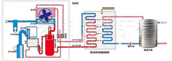 甲方有1臺22KW的空壓機,即將再購入一臺相同型號的空壓機,2臺合計44KW電功率,根據我方空壓機熱回收器的回收效率,2臺空壓機在負載較高的情況下回收效率可以達到70-80%,每小時合計回收熱量可達30KW左右,這部分熱量可以供給烘房使用,約可以替代烘房電加熱功率的30%。