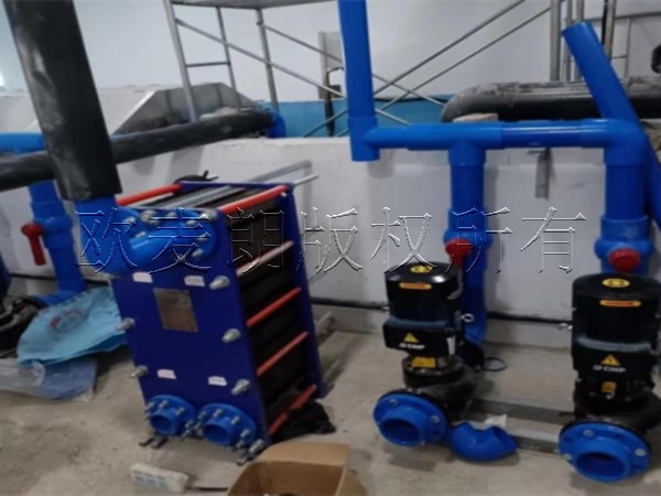 經計算得出配備“OML-500A-II(50P)”,總共配備5臺(50匹)機組提供即可滿足此育苗池的設計溫度要求;整套系統采用間接加熱方式,配備儲熱水箱及板式換熱器,通過空氣能熱泵加熱儲熱水箱,水箱溫度可控制在35-40度左右,水箱另一端在連接板式換熱器,板式換熱器另一端連接養殖池,通過熱量傳遞方式進行換熱,以達到養殖池所需的溫度要求。