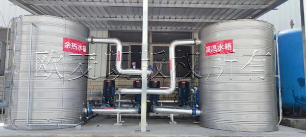 2廢熱水溫,給我司余熱冷回收機組當熱源,通過壓縮機由低熱轉換為高熱,至高溫水箱(90℃)。