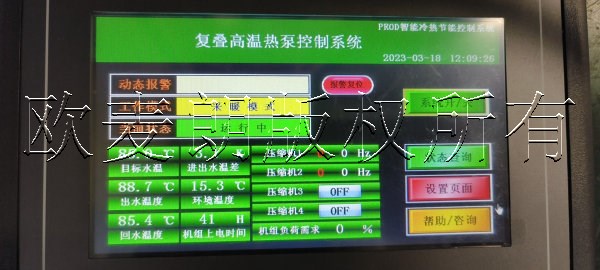 根據要求同時加熱總重量為24000L,3小時升溫45度,每小時升溫15度,根據果凍的比熱容,可以計算出每小時的熱量需求為352KW,建議配置5臺OML500-GW/FC復疊高溫熱泵機組,考慮冬季平均環境溫度為-7度。配置一個5立方的緩沖保溫水箱(內置應急用電加熱)。用復疊高溫熱泵加熱保溫水箱,溫度設定為85度。用保溫水箱中的高溫熱水替代原來蒸汽換熱的熱水管道中進行循環。經計算改造后提高生產效率,降低50%的生產能耗。