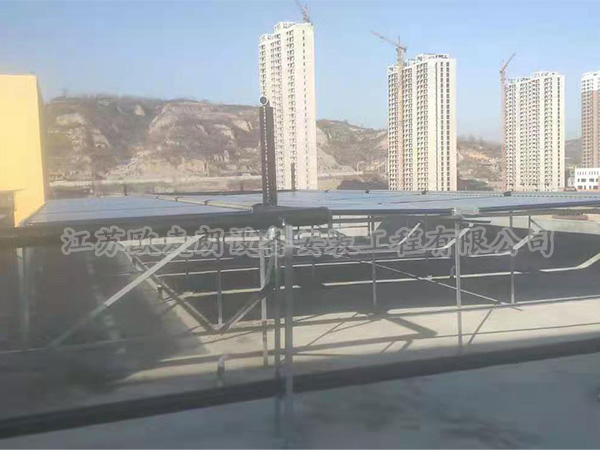 主機配置:36組太陽能集熱器+18噸水箱+燃氣鍋爐輔助熱源