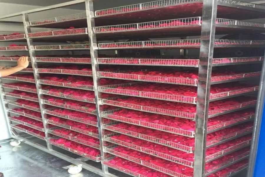 玫瑰花不好保存,而且花農也沒有深加工的設備。使用玫瑰花空氣能熱泵烘干機設備,不受場地的限制,比人工自然晾曬效果好,特別適合中小型花農的生產需求。